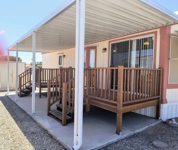 DARLING 1997 FLEETWOOD PARK MODEL LOCATED IN 55+ PARK IN THE FOOTHILLS OF SUNNY YUMA AZ! PRICE REDUCED TO JUST $31,500! owner will look at offers. This 11X35 park model is well kept, is nicely furnished, and has 2 large covered porches porches on the side of the house. This home has a gas stove, and gas heat. It does not have a heat pump. Home is cooled by a portable a/c in the living room. For year round living, a mini split would be ideal for cooling the home. This home is located in Mt. Cactus Ranch and the rent is only $410 a month and park pays water, sewer and garbage. Mt. Cactus Ranch offers a nice clubhouse, a BBQ and picnic area, shuffleboard, pickleball, nice pool and spa, billiards room and library, a puzzle area, to name just a few. Park offers jam sessions in the winter, potlucks, ice cream socials, spaghetti feeds, craft fairs etc. Park is also pet friendly. What’s not to like! Mt. Cactus Ranch offers a nice clubhouse, a BBQ and picnic area, shuffleboard, pickleball, nice pool and spa, billiards room and library, a puzzle area, to name just a few. Park offers jam sessions in the winter, potlucks, ice cream socials, spaghetti feeds, craft fairs etc. Park is also pet friendly. What’s not to like! You must have a credit score of at least 700 to qualify to live in this park. YOU DO NOT OWN THE LAND. Video available upon request.